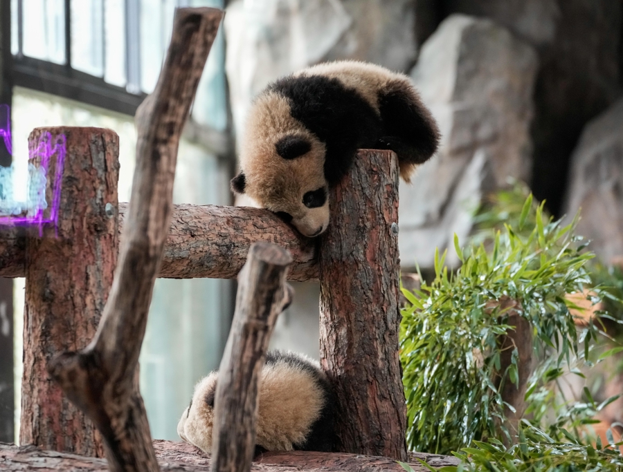 大熊猫“龙凤胎”亮相 新民晚报影相记者 陈梦泽 (下同)